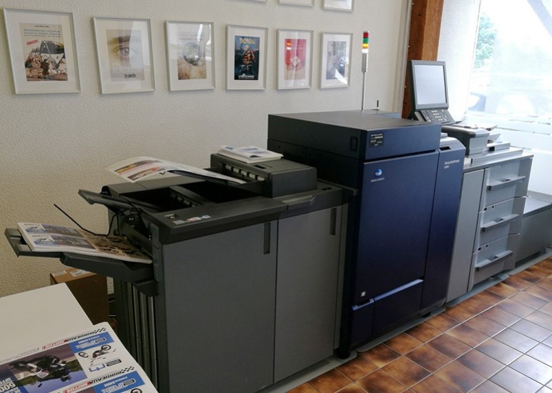 Via sa productivité importante, les tarifs de vos documents à imprimer sont plus attractifs, notamment pour les livres et la possibilité de réaliser des couvertures à rabats. Toute votre communication visuelle peut passer entre ses rouleaux : dépliants, plaquettes, brochures, signalétique ou autres affiches de gondoles. Grâce au large choix de formats et de finitions que cette presse numérique propose, elle est la machine idéale pour tous vos documents ! Et sa qualité quadrichromie fera que vous aussi, vous ne pourrez plus vous passer d’elle dans vos travaux.
